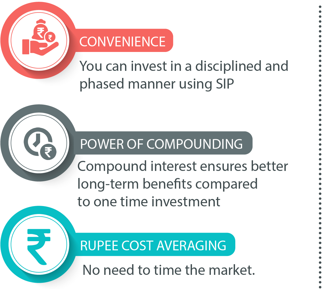 SIP allows you the convenience of timely and small investments on a regular basis. Just in case you are not convinced, let us take you through some of the benefits of setting up an SIP: